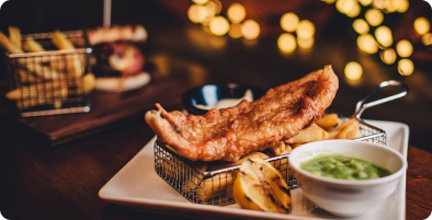 Small portion of fried carp with mashed potatoes