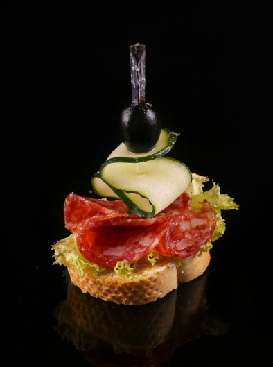 Topped with cucumber and roe
